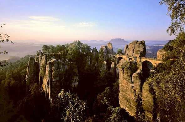 Die Festung Königstein - die deutsche Bastille - liegt am linken Elbufer unweit von Dresden. Die 1233 erstmalig erwähnte Festung spielte nie eine wichtige Rolle in militärischen Auseinandersetzungen, wurde aber auch niemals erobert. Die sächsischen Fürsten schätzten sie als sichere Zuflucht und Aufbewahrungsort für den Staatsschatz bei Kriegsgefahr und Belagerungen. Von 1591 bis 1922 war die Festung das bekannteste Gefängnis in Sachsen. Seit 1955 kann die Festung besichtigt werden, u.a. beherbergt sie ein militärhistorisches Museum.