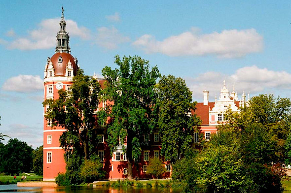 Das Schloss wird erstmals im 13. Jh. als Befestigungsanlage an der Neiße erwähnt. Den Park legte Fürst Hermann von Pückler-Muskau an. Inspiriert von den englischen Landschaftsgärten, gestaltete er das Anwesen zwischen 1815 und 1845 in einen riesigen Landschaftspark um. Im 2. Weltkrieg wurden Schloss und Park stark in Mitleidenschaft gezogen. 1945, als die Neiße zur deutsch-polnischen Grenze wurde, wurde auch der Park geteilt. Die Verwaltungen auf beiden Seiten arbeiten heute eng zusammen, um die 830 ha große Anlage endgültig wiederherzustellen. Seit 2004 gehören Park und Schloss zum UNESCO Welterbe.